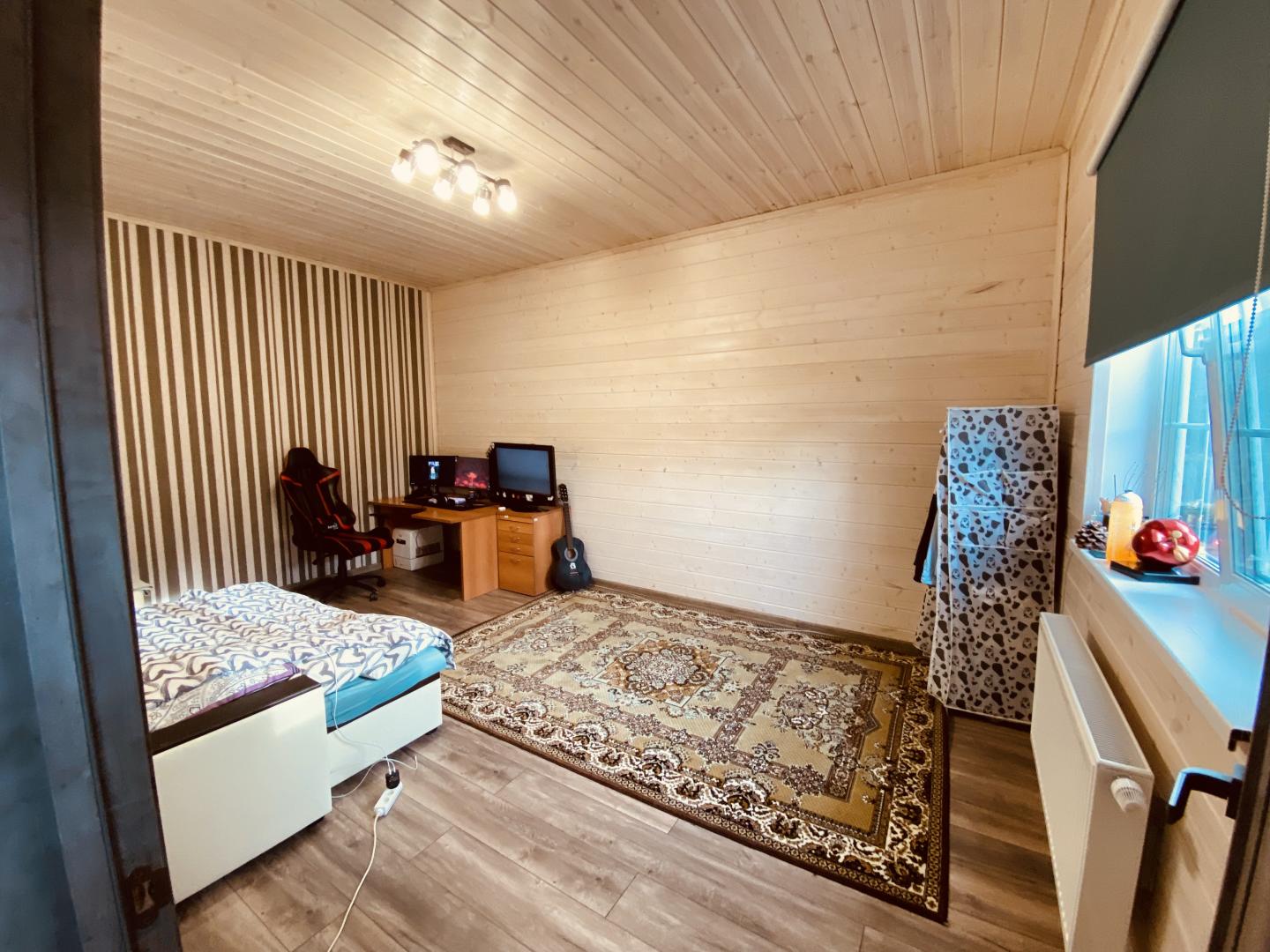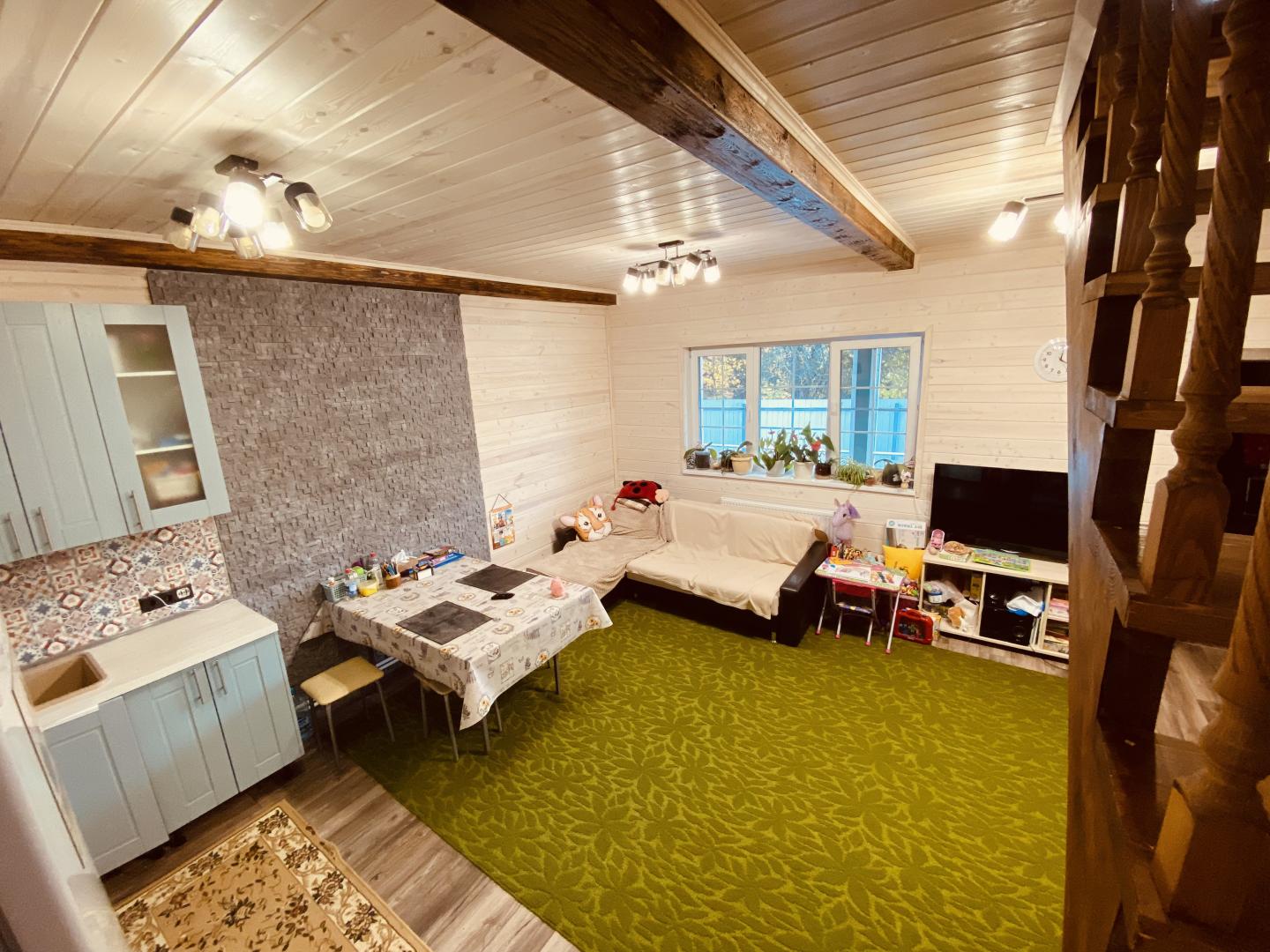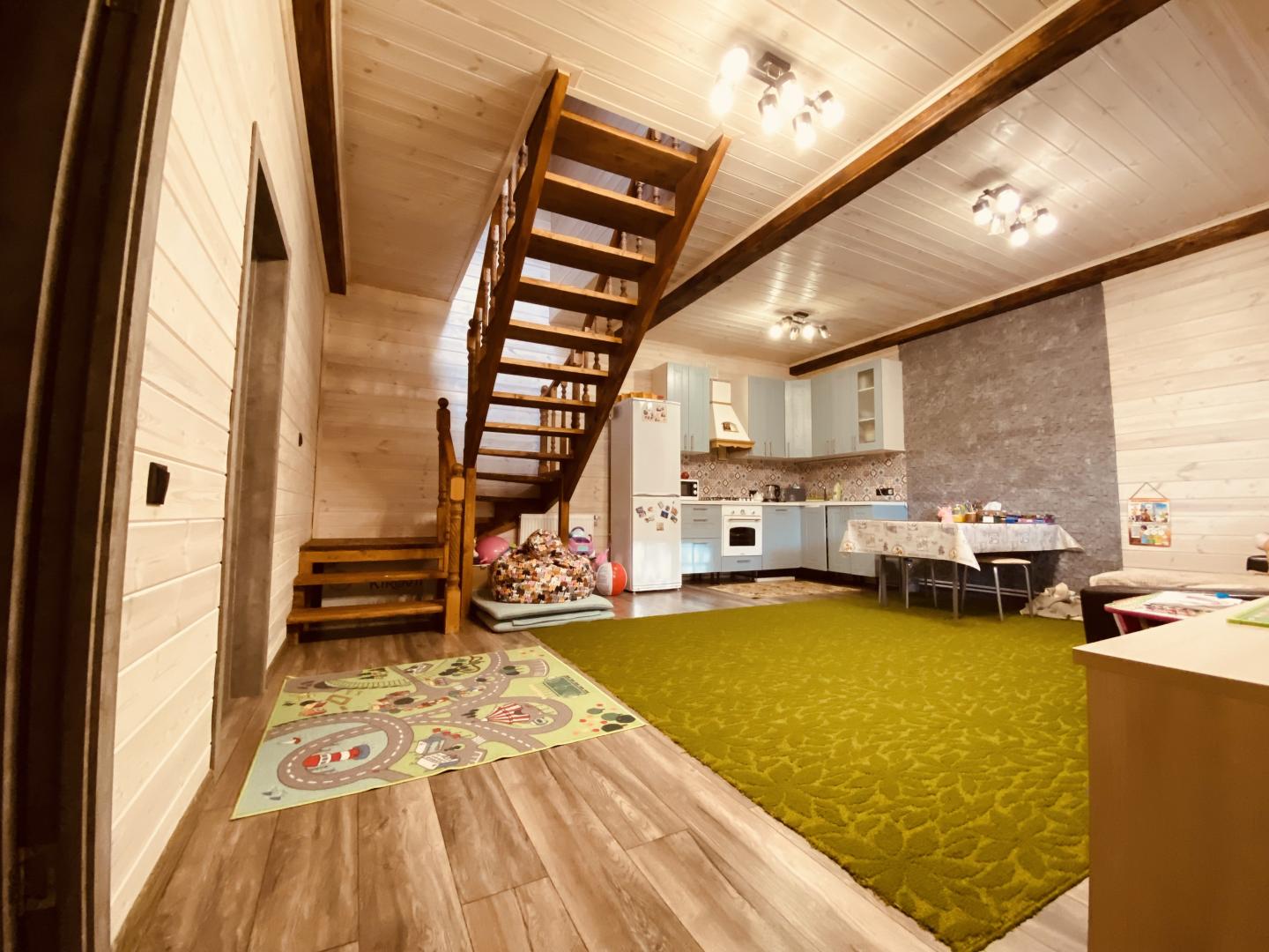 1 этаж: Большая кухня- гостиная, спальня, с/у, котельная, холл.