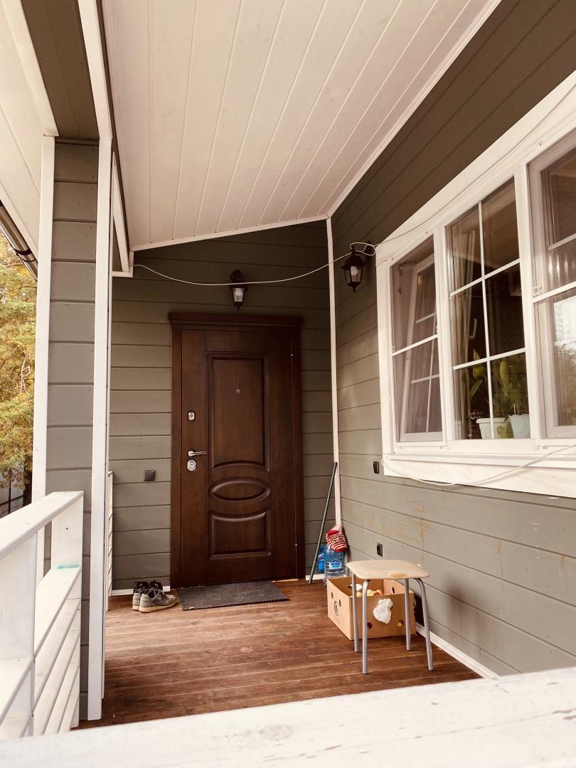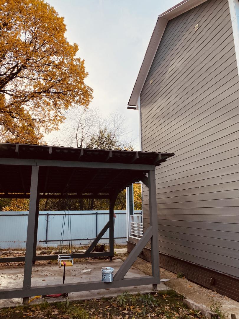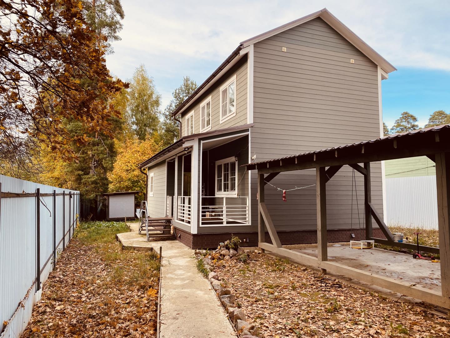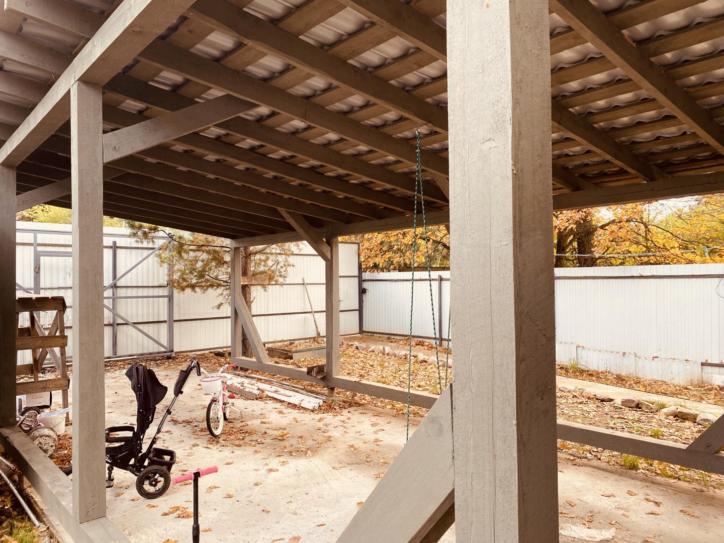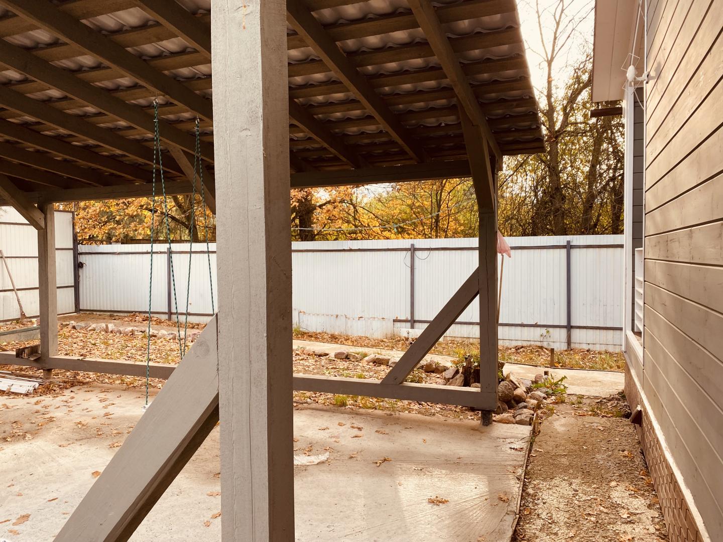 Участок огорожен забором, веранда, по территории видеонаблюдение, интернет, навес м/м, автоматические ворота, перед участком большая собственная парковочная площадка, около 20 соток.